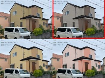 外壁・屋根のカラーシミュレーションを行い、右上(赤枠)のお色に決まりました!