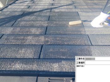 屋根下塗り施工中