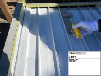 屋根板金錆止め施工中