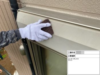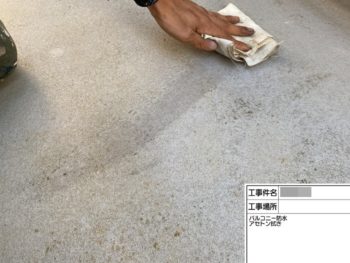 ベランダアセトン拭き施工中
