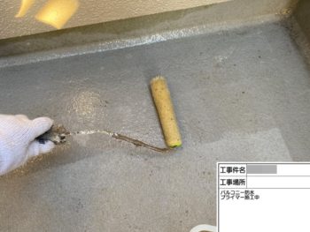ベランダ防水プライマー施工中
