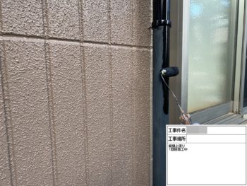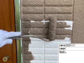 外壁中塗り施工中