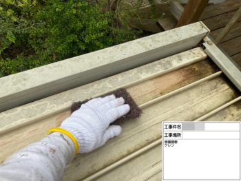 屋根板金ケレン施工中