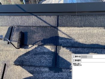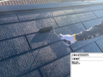 屋根上塗り施工中