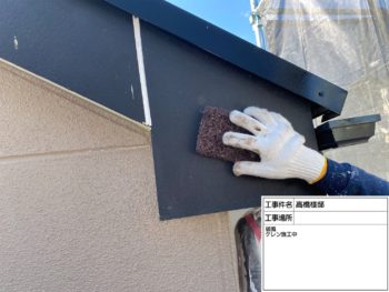 シャッターBOX下塗り施工中