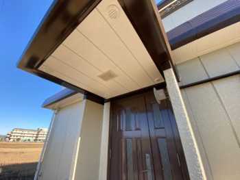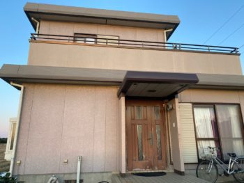 | お客様のご要望 | 外壁はAGCコーテック株式会社のボンフロンでお色は温かく柔らかい印象のペールロマン、屋根はスーパーシャネツサーモSiのクレタグレーをお選びいただきました。破風板、雨樋、雨戸はこげ茶で塗装いたしました。お住まいのデザインがより際立ち、高性能・高機能の塗料が活き美観性を兼ねそろえた仕上がりになりました。玄関もお住まいの“顔”としてふさわしいお色味と質感で存在感もあり落ち着いた美しい佇まいが印象的です。 外壁塗料のボンフロンはフッ素樹脂塗料で耐候性に優れ、屋根塗料のスーパーシャネツサーモSiはチタン複合特殊無機顔料の使用により高い遮熱効果を発揮するため耐候性に優れ、色彩や光沢を長期間美しく保持します。丁寧な施工で素材や建材を守ることができ綺麗なお住まいで気掛かりなく安心してお過ごしいただければ幸いです。 |
