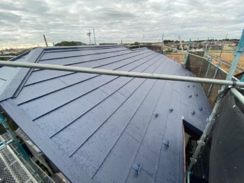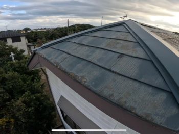既存屋根材はスレート屋根です。薄い板を使用しているため、劣化や反りがしやすい材料です。