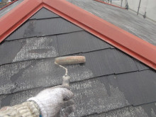 屋根、中塗り作業後、上塗り作業でもうすぐ完成です!