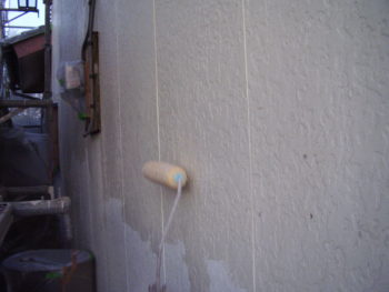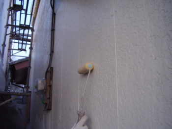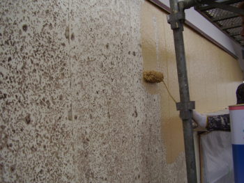 高圧洗浄後、下塗りから丁寧と施します。
