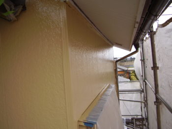 軒天も下塗り、中塗りと順調に作業を重ねていきます。