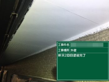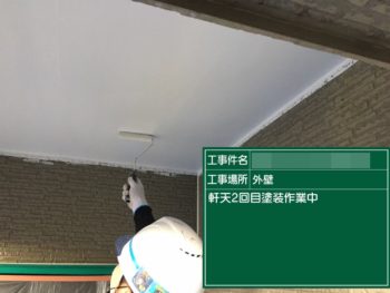 軒天2回目塗装施工中