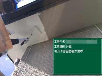 軒天1回目塗装施工中