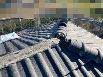 棟瓦葺き戻し施工中