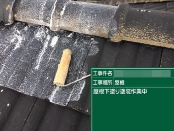 屋根下塗り施工中