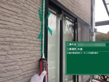 コーキング充填施工中