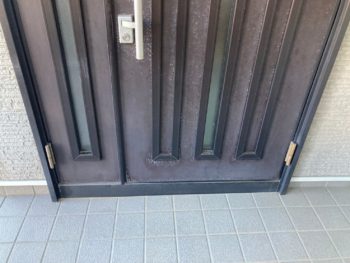 玄関ドアは劣化が進み、色褪せてしまっています。