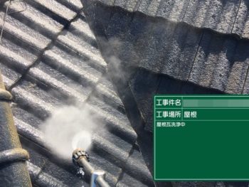 屋根高圧洗浄施工中