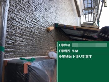 外壁下塗り施工中