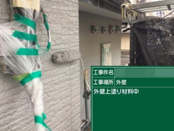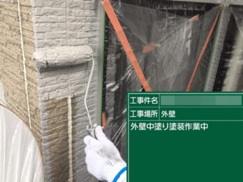 外壁中塗り施工中
