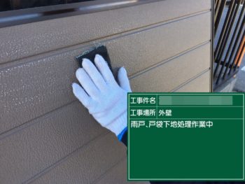 雨戸下地処理施工中