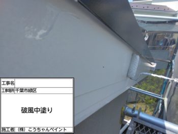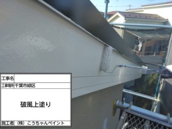 破風下塗り施工中
