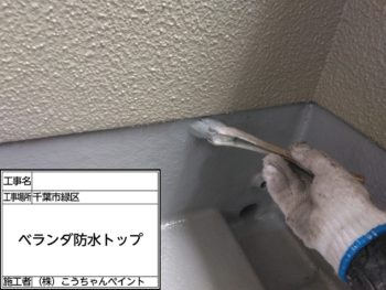 ベランダ防水トップ施工中