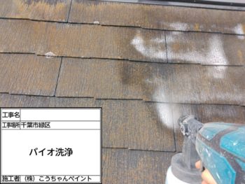 屋根にも塗膜劣化によるコケ藻の付着が見られます