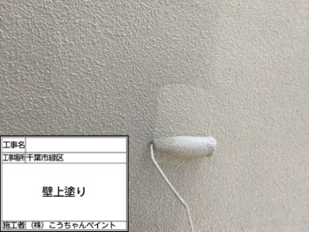 外壁中塗り施工中