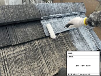 屋根下塗り施工中