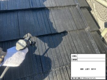 屋根上塗り施工中
