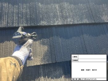 屋根中塗り施工中