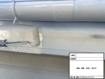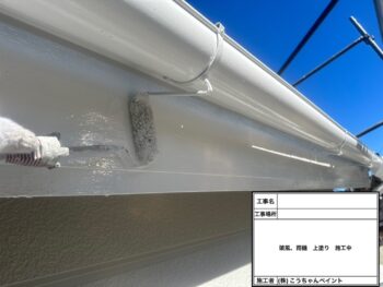 破風・雨樋中塗り施工中
