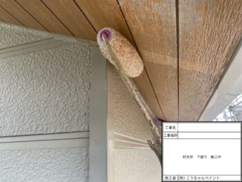 軒天下塗り施工中