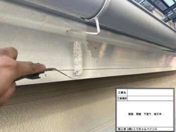 破風・雨樋下塗り施工中