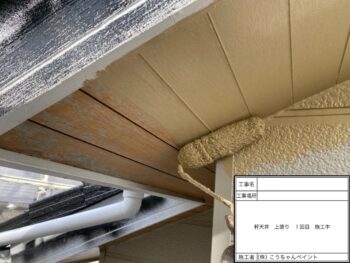 軒天上塗り1回目施工中