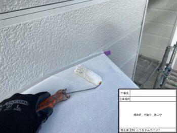 外壁中塗り施工中