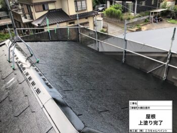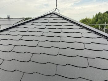 | お客様のご要望 | 新聞の折込チラシをご覧になり、お問い合わせをいただきました。 ちょうど屋根の色あせが気になり始めたタイミングだったとのことで、塗装をご検討されていたそうです。 また、ポストに入っていたチラシも目に留まり、より関心を持っていただけたとのことでした。 「こうちゃんの笑顔がとても印象的で、一度会ってみたいと思った」とお話しいただき、 実際にお会いした際もあたたかく迎えてくださり、こちらも嬉しい気持ちになりました。 お電話でのやりとりについても「丁寧で気持ちの良い対応だった」とお言葉をいただき、大変ありがたく感じております。 屋根塗装には、日本ペイントの「ファインパーフェクトベスト」を使用。 お選びいただいたカラーはブラックで、屋根全体がキリッと引き締まり、 建物全体の印象がより上品で落ち着いた雰囲気に仕上がりました。 |