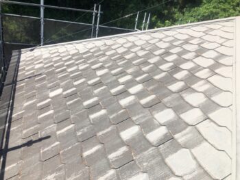 屋根材の表面が粉を吹いたような状態になっており、保護機能が低下していました