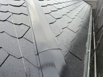 ブラックカラーで仕上げた屋根はツヤがあり、洗練された印象に生まれ変わりました