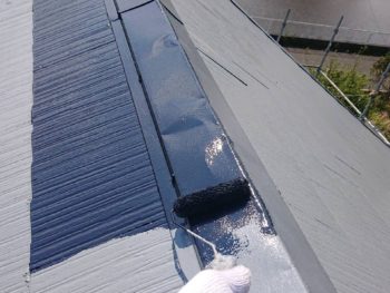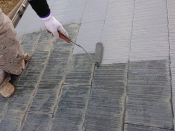 屋根下塗り塗装施工中