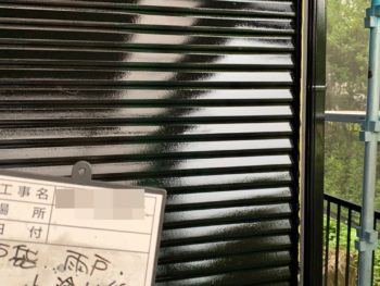 戸袋・雨戸中塗り施工中