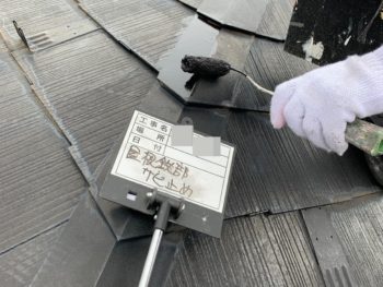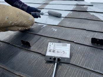 屋根下塗り施工中