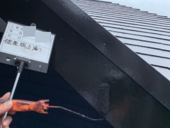 破風上塗り施工中