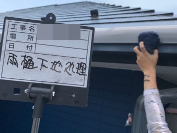 雨樋下地処理施工中