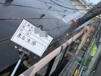 屋根高圧洗浄施工中