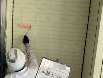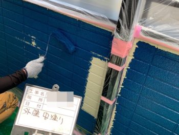 外壁中塗り施工中