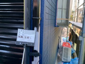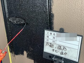 戸袋・雨戸下塗り施工中