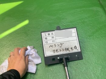ベランダアセトン拭き施工中
