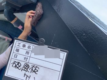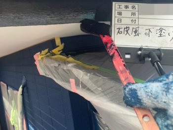 破風下塗り施工中