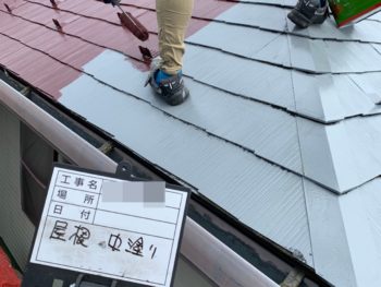 屋根中塗り施工中